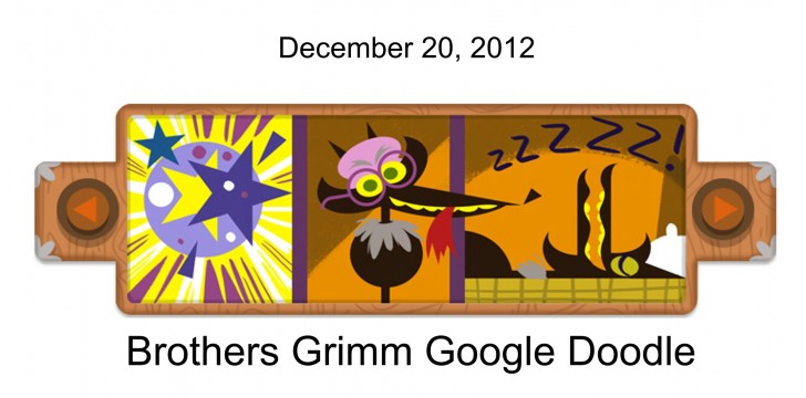 When you open your Google search engine, the Doodle takes you by several of the different fairy tales as a slide show. When you put your mouse on Doodle then you see all slide and then finally, you are taken to a Google search result page for[Brothers Grimm].